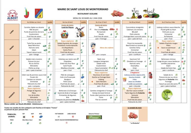 Menu avril 2026